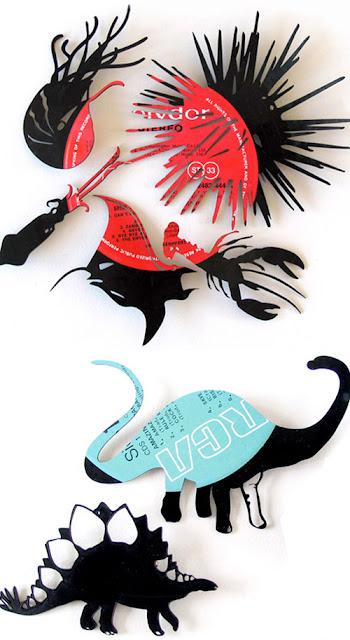 Olha que demais esses acessórios do artista britânico Cat Davison. Ele usa discos de vinil velhos para criar colares, broches e brincos na forma de seres marinhos, de dinossauros... Lindo, lindo, lindo. Seu trabalho já apareceu em revistas de moda e design descoladas, como a Icon, a Blanket e a Design Week. Ele também tem uma coluna aqui em Londres no site do “The Guardian” ensinando “como fazer as coisas”. Super interessante pra quem curte um artesanato cool, sabe?