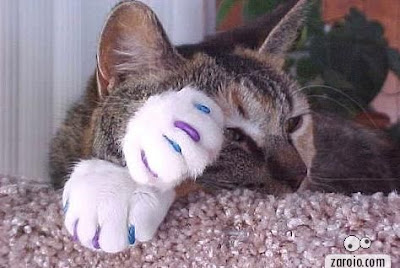 Além de salvar móveis, as unhas postiças estão disponíveis em diversas cores e dão um colorido especial para a manicure do seu bichinho.
