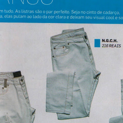 Essa calça saiu na revista Men’s Health de Novembro. Por ser de um jeans bem clarinho, quase se passa por branco e fica ótima com outros tons de jeans.